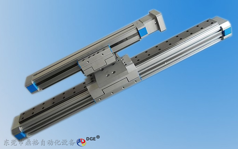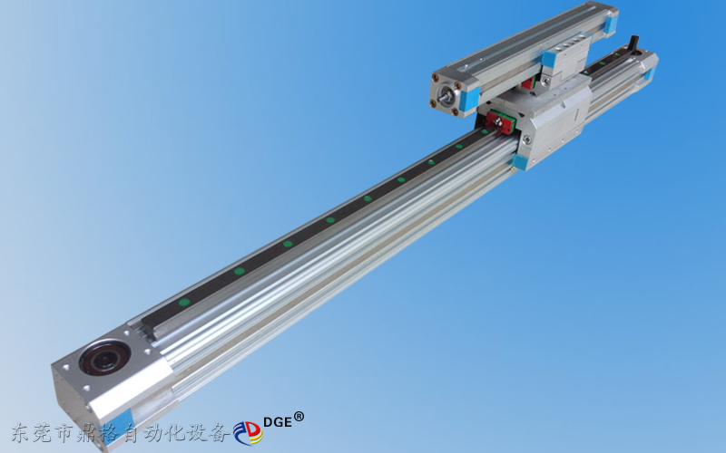 鼎格 DGE-25-SP-EG 伸縮機械手滑臺,采用25型、60型滑臺組合搭配-2條平行軸,缸筒型材(25型45*45mm-有效行程1-1000mm、60型64*64mm -有行程1-6000mm),水平負載能力1-20kg,傳動精度±0.1mm(行程1米以內的精度),最高傳動速度500mm/s和5000mm/s(加減速時間 0.2秒)相關配件:上銀碳鋼直線導軌,德國馬牌同步帶,NSK防水防塵軸承,TBI滾珠絲桿,,可根據(jù)客戶行程要求設計定制.